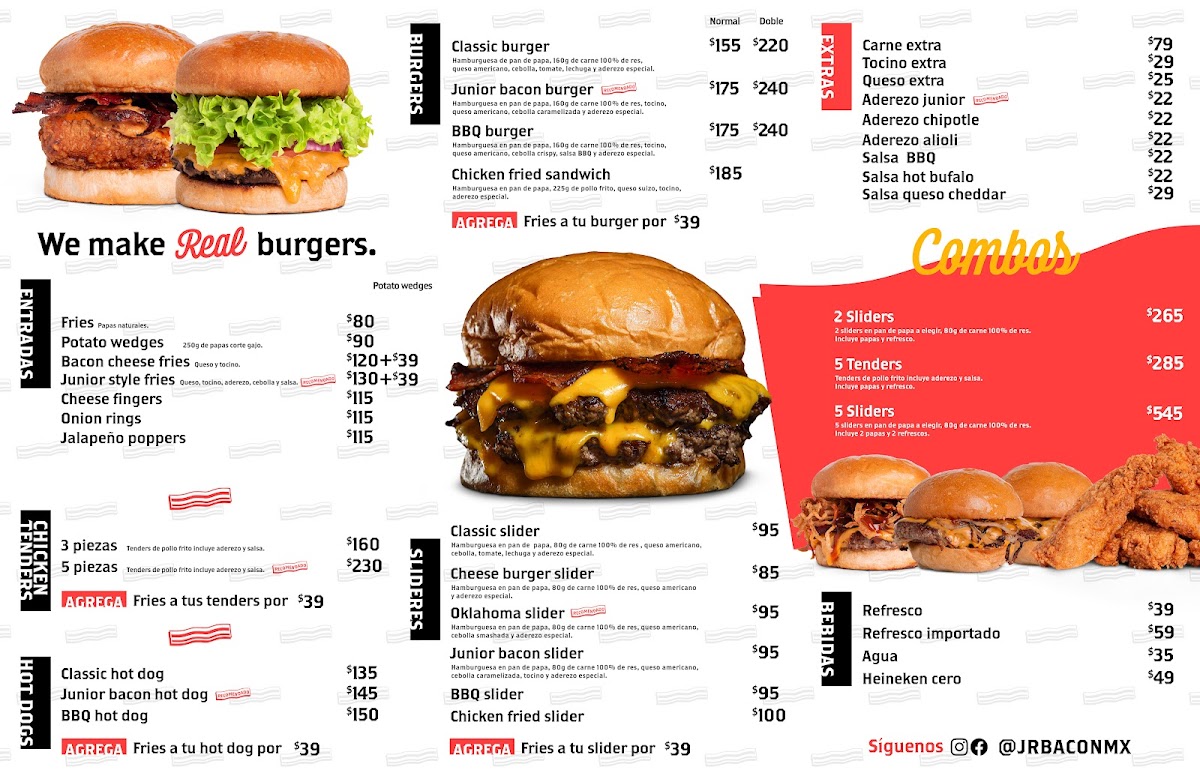 “ If you are a lover of authentic American food and are looking for a place where you can enjoy juicy burgers, loaded hot dogs and crispy tenders, JR Bacon is, without a doubt, a gastronomic gem that you cannot miss. From the moment you enter the restaurant, you are transported to an authentic American diner, with a cozy atmosphere, classic decor and an irresistible smell of grilled meat and freshly fried potatoes. The place has a style clearly inspired by classic US fast food joints, with details that evoke the essence of a real diner. It is a clean, well-lit space with a vibrant but without being chaotic atmosphere. It is clear that they take great care of the customer experience, from the background music to the distribution of the tables, which allows you to enjoy the food without feeling cramped. The service is another strong point. The employees are friendly, attentive and always willing to make recommendations or answer any questions about the menu. It doesn't matter if you go on a busy day, they always make an effort to serve you quickly without neglecting quality. You feel the warmth and the effort to make you feel welcome, something that undoubtedly adds points to the overall experience. This is where JR Bacon really shines. The food not only meets, but exceeds expectations. The burgers are the star dish on the menu and, honestly, they are some of the best I've ever had. The bread is soft and lightly toasted, which gives a nice contrast to the juicy, well-seasoned meat. You can notice that they use fresh, quality ingredients: the cheese melts perfectly, the bacon is crispy, and the vegetables add freshness without overpowering the main flavor. They have an interesting variety of burgers, from classic ones to more daring options with ingredients such as special sauces, caramelized onions or jalapenos. Regardless of which one you choose, they all have a perfect balance between flavor and texture. If you are a fan of American-style hot dogs, you will feel in paradise here. The sausages are of excellent quality, with that smoky and juicy touch that makes the difference. In addition, the toppings are generous and well distributed: from the classic with mustard and ketchup to more elaborate versions with chili, melted cheese or crispy onion. It shows that every detail is well thought out to offer an authentic experience. The chicken tenders are another must-try dish. They are breaded to perfection, achieving a crispy texture on the outside and juicy on the inside. The best thing is that they are not greasy or cloying, but have the right balance between flavor and freshness. In addition, the sauces that accompany them are very well made, from the classic ones like BBQ and honey-mustard to more intense options like spicy buffalo. French fries are the ideal complement. You can order them in their classic version or with toppings such as cheese and bacon, and in both options they are delicious: crispy on the outside, soft on the inside and with just the right amount of salt. They also offer onion rings and sweet potato fries, which are a great option if you want a little variety. Another notable aspect is that the prices are quite reasonable for the quality and quantity of food you receive. It is not the typical place where they serve you a small portion; here you really fill up and enjoy every bite. The value for money is excellent, making it worth every penny. Ultimately, JR Bacon is a restaurant that captures the essence of American food with impeccable execution. Whether you go for a loaded burger, a classic hot dog or some crispy tenders, here you will always find quality, good service and a cozy atmosphere. If you are a lover of USA-style food, this is a place you can't miss. Without a doubt, one of the best options to enjoy a good feast in the purest American style and the best in Nuevo Leon. Totally recommended! ”