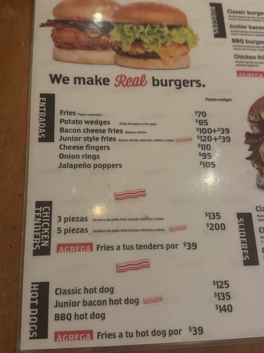 At Junior Bacon, our story is one fueled by passion for exceptional food and warm hospitality. Nestled in Monterrey, we pride ourselves on serving delicious burgers that have quickly become favorites among locals. Each dish is crafted with care, whether it's our mouthwatering beef or tender chicken, complemented by perfectly seasoned fries. Our friendly staff creates an inviting atmosphere, ensuring that every visit feels like a cherished experience. We believe in making moments memorable, from birthdays to family gatherings, solidifying our place as a beloved eatery. Come savor the magic of Junior Bacon, where every bite tells a story!